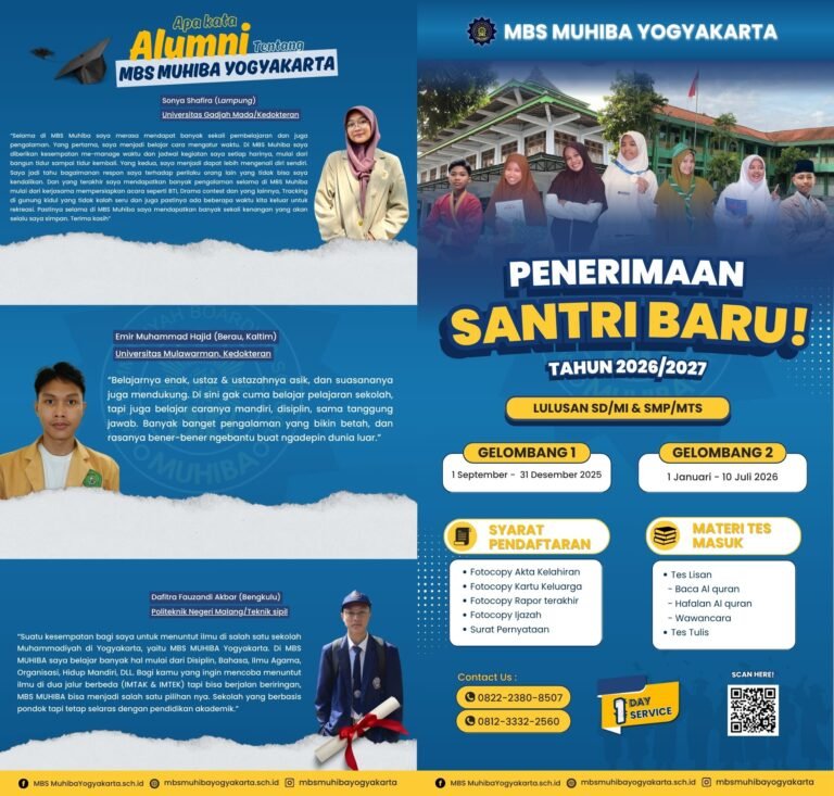 🌟 PENERIMAAN SANTRI BARU (PSB) MBS MUHIBA YOGYAKARTA 2026/2027 🌟